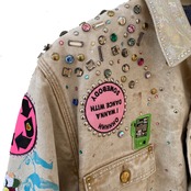 ヴィンテージのCarharttワークウェアジャケットが、ペイント、パッチ、デニム、スタッズ、ラインストーンでアップサイクルされ、唯一無二の個性が輝きます。これからの寒い季節にぴったりな一着です
